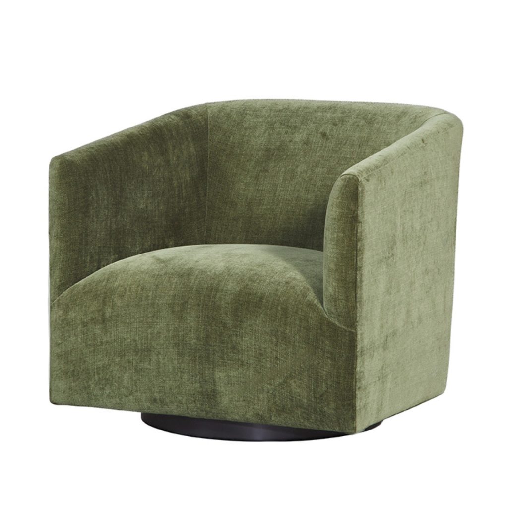 At 31 inches wide by 32 deep and 29 inches high, the Modesto fits comfortably in smaller living rooms, bedrooms, home offices, and reading nooks where full-size swivels would overpower the space. The hand-tied construction and premium down filling elevate this beyond casual furniture into designed seating territory. Works equally well in transitional, modern, and traditional interiors.