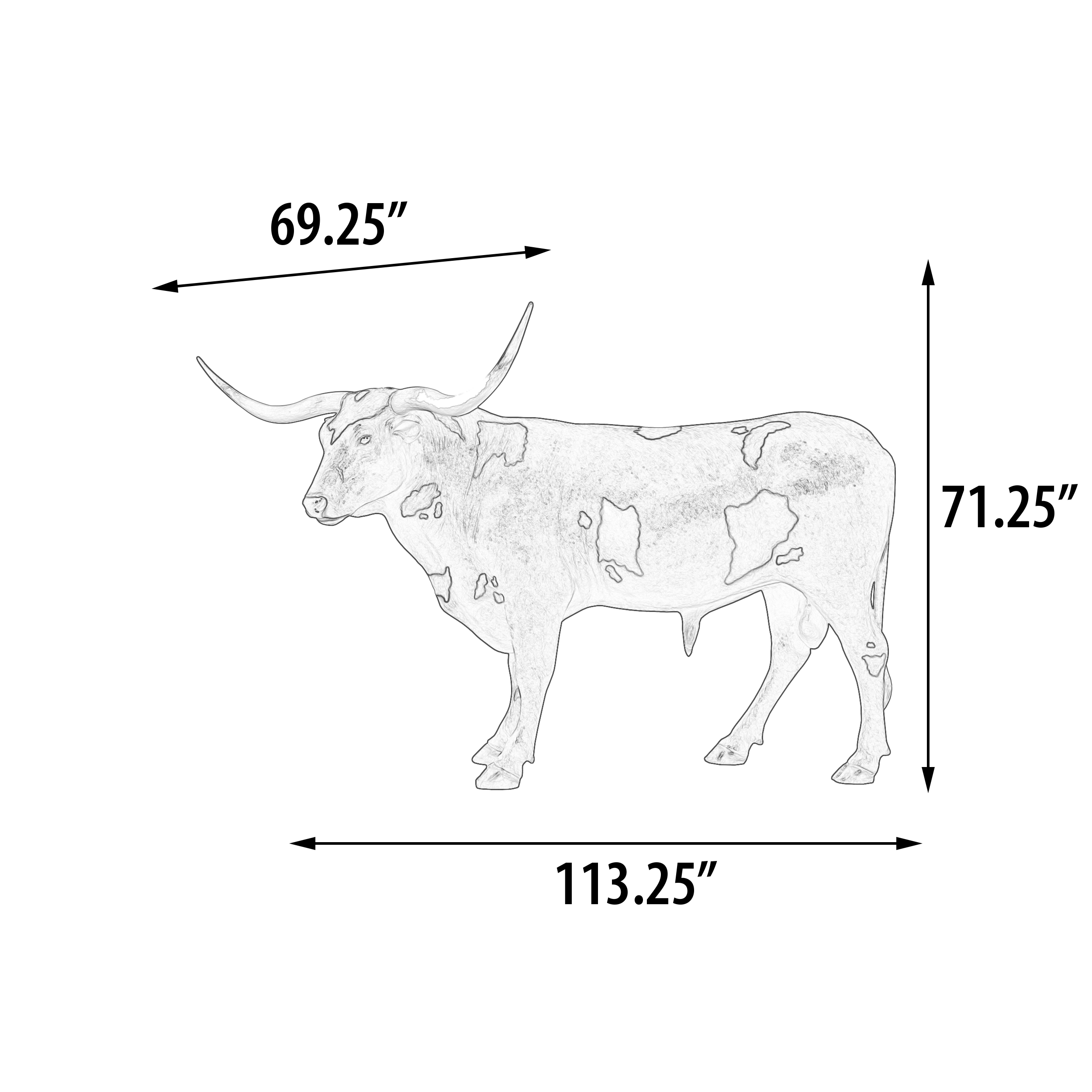 71.25 Inch Height Texas Longhorn Bull is an investment in quality and hand craftmanship that will be appreciated and spur the imagination of young and old generations to come. Artists handcraft it in all weather fiberglass materials. The finishing is also beautifully executed. Note: Outdoor use may require ongoing maintenance, depending on the circumstances.