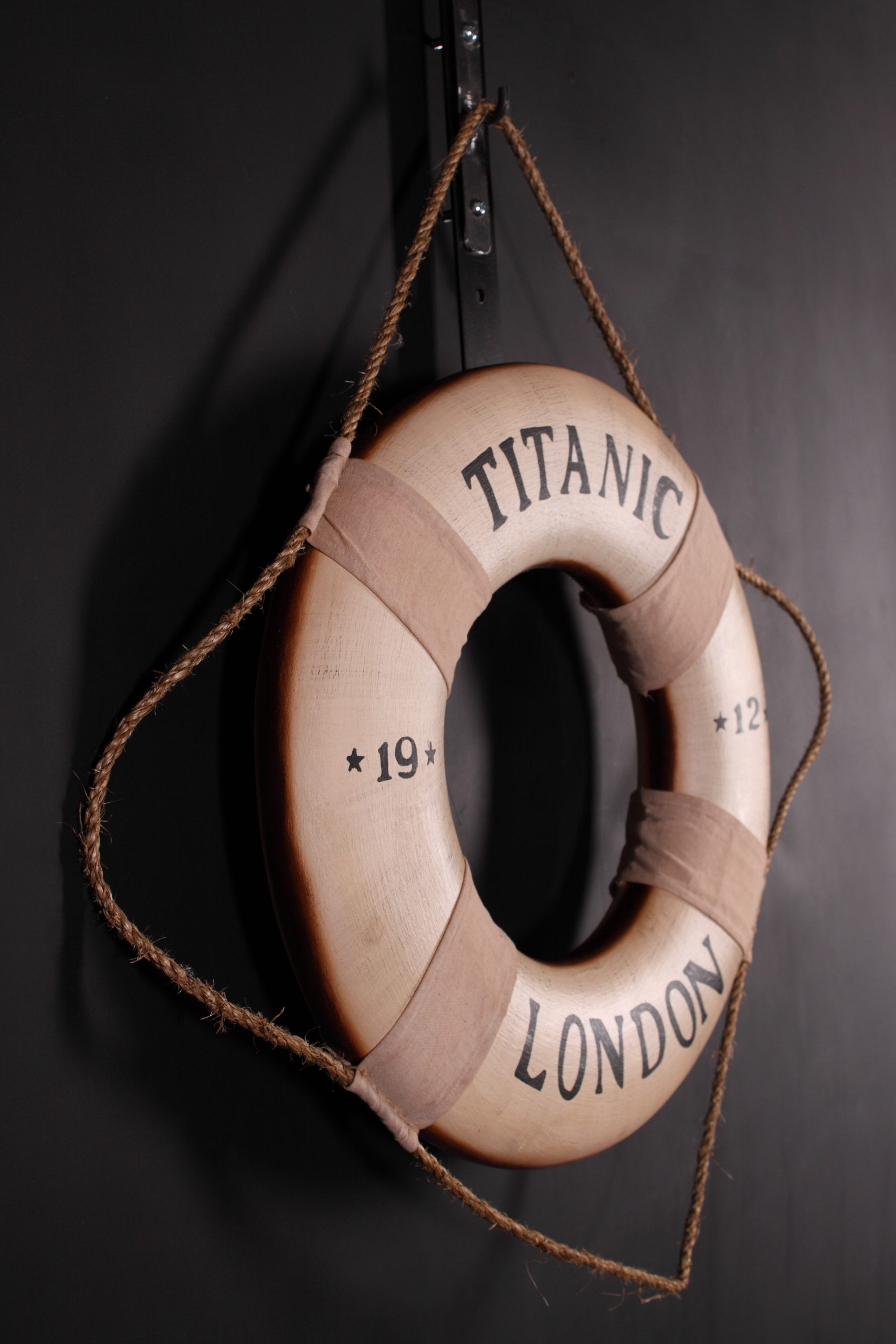 The Titanic Life Preserver is a theme décor replica from infamous Ship. Features a logo of “Titanic London 1912” lettering and a rope accent, the item is easily hung and offers a wide variety of décor uses from Restaurants to Residential for Coastal areas to Historical Uses. It is hand made and hand-finished from Whimsical Treasures a division of AFD Home. No Assembly Required!