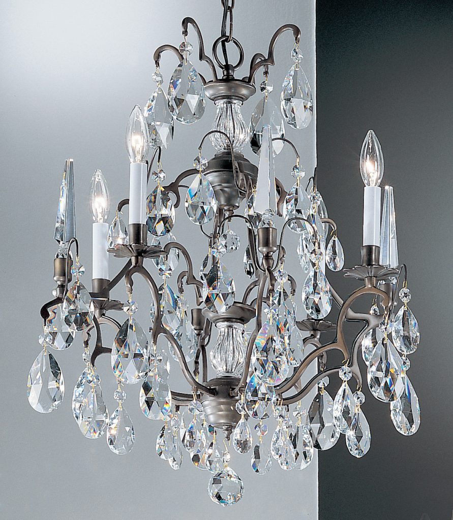 These chandeliers and wall sconces are the same frames as used in the previous pages but trimmed with the almond prisms in 3 crystal qualities