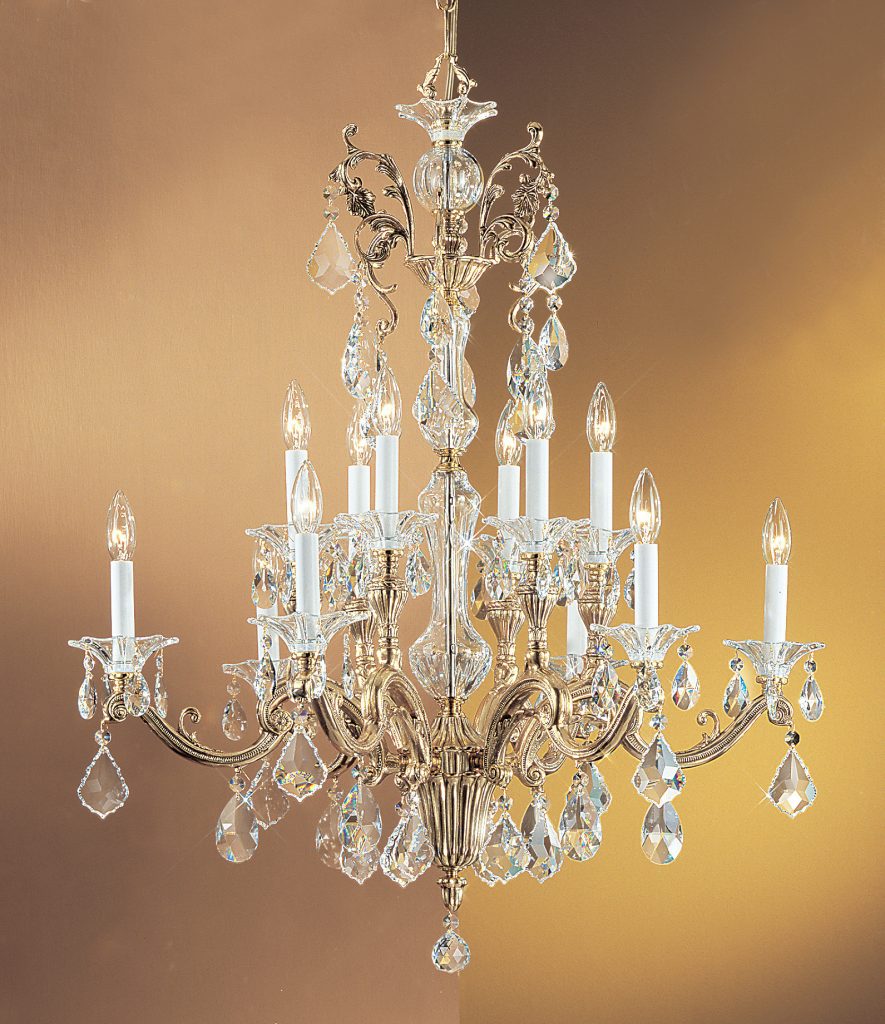 The historical beauty of the city of Firenze (Florence) is timeless like the intrinsic beauty of old world lighting designs. Taking a concept of lighting that graced the homes of royalty in the eighteenth century and transforming it into a more contemporary look is what this series is all about. Like its sister collection, our Via Veneto, this series combines heavy chased Spanish brass castings with 25% lead crystal columns, founts and bobeches; then adorned with a myriad of crystal shapes and sizes.