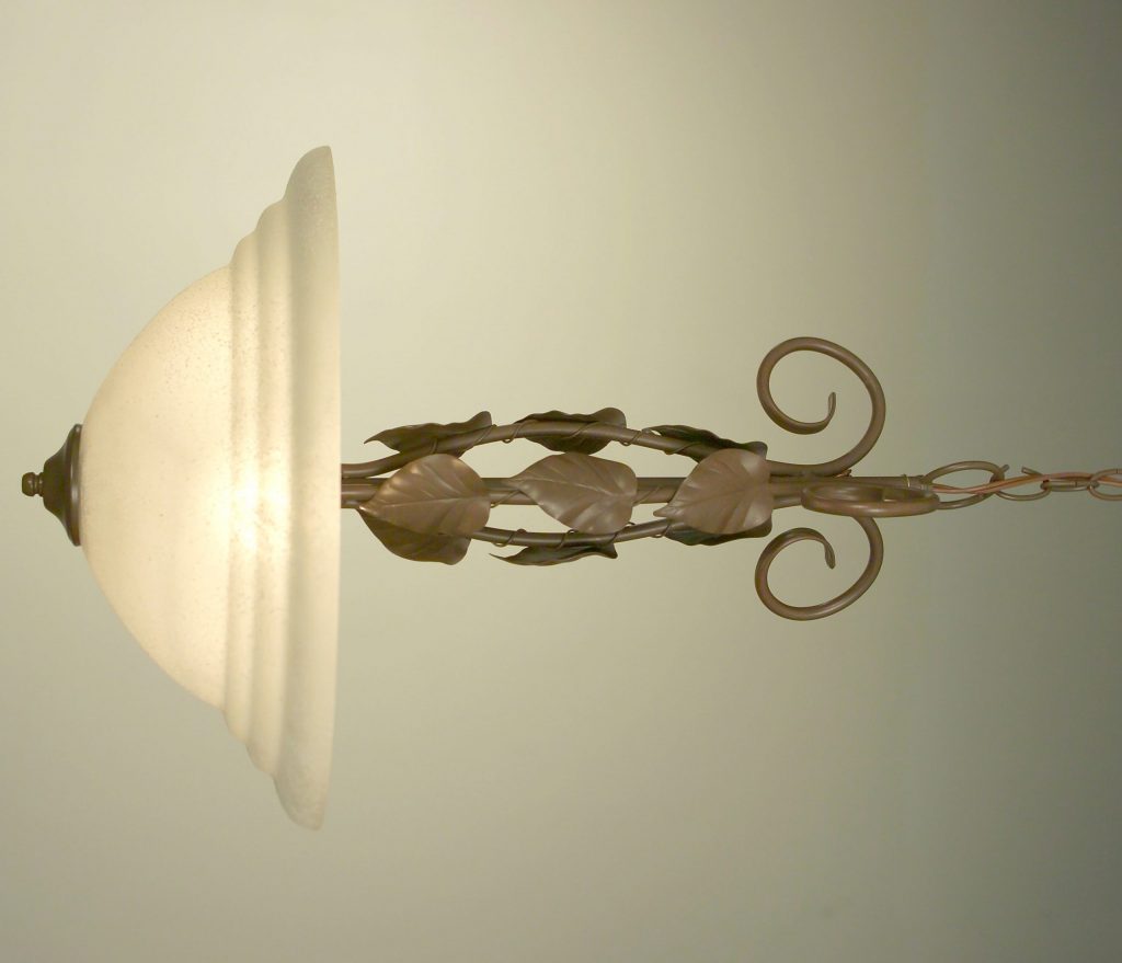 The Cortina series has a natural appeal with Rines and leaRes twisting there way around the columns and frosted glass bowls.