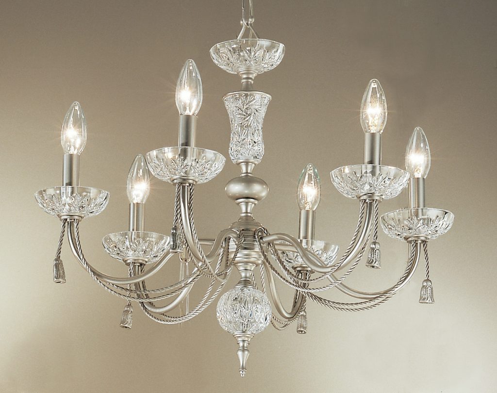 Elegantly styled chandeliers of braided rope and 24% lead crystal columns, founts and bobeches are fashioned by our Spanish craftsmen from solid brass and finished in 24k gold and satin nickel to add stature and class to any home or commercial setting; an oxymoron perhaps but thus creating contemporary classic chandeliers.
