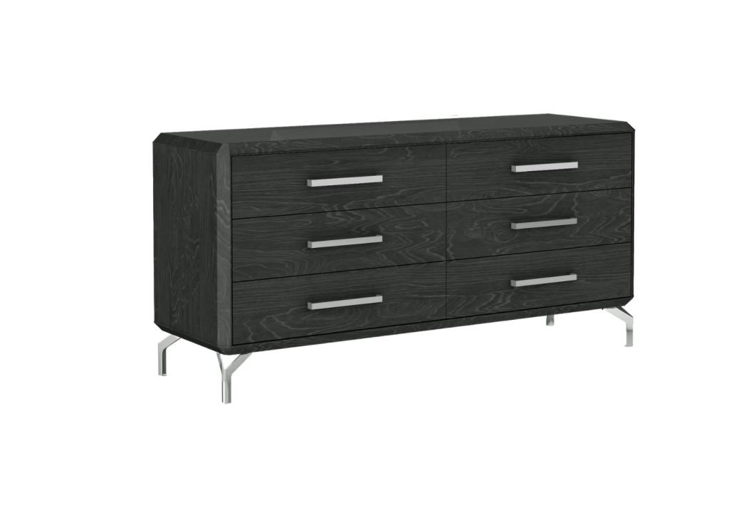 The Los Angeles dresser brings refined bedroom organization to life with six spacious drawers finished in grey lacquer. Each drawer operates on precision self-closing runners for smooth, silent operation. The pristine lacquered surfaces reflect light beautifully, while polished metal hardware adds refined accents that elevate everyday storage into a design statement.