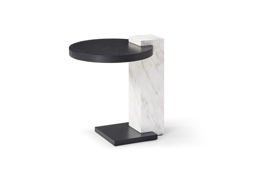 - Material Dialogue: Marble-texture white column supports warm smoke oak veneer top—contrasting materials unite in visual harmony.
