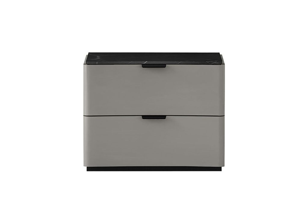 Light grey nightstand with marble-textured top and two soft-closing drawers to complete the Massimo suite.
