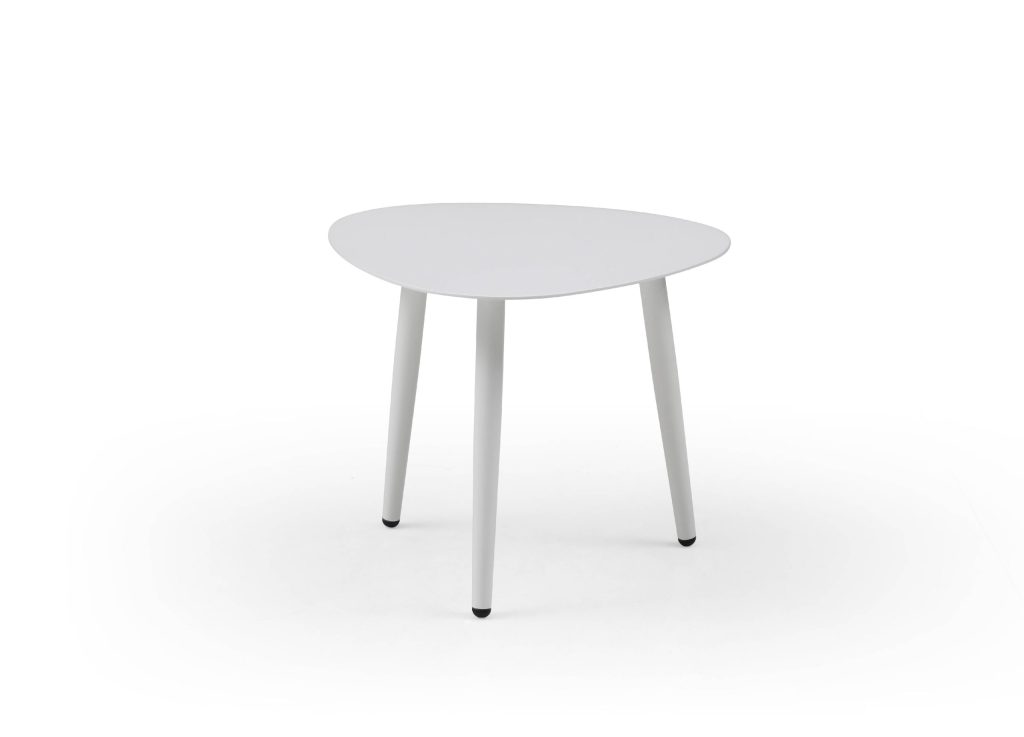 At 13 inches tall, the Rowan Large solves the challenge of low contemporary lounge seating—the height aligns perfectly with arm-rest proportions, providing genuine usable surface for drinks, books, and decorative objects. The expanded 26 by 25-inch surface area accommodates multiple objects simultaneously, transforming the table from sculptural accent to genuinely functional outdoor furniture. The light 9-pound weight remains manageable for repositioning while substantial enough to feel like genuine furniture rather than portable novelty. The powder-coated aluminum develops subtle patina over seasons, the white gradually acquiring grey undertones as UV exposure ages the material.