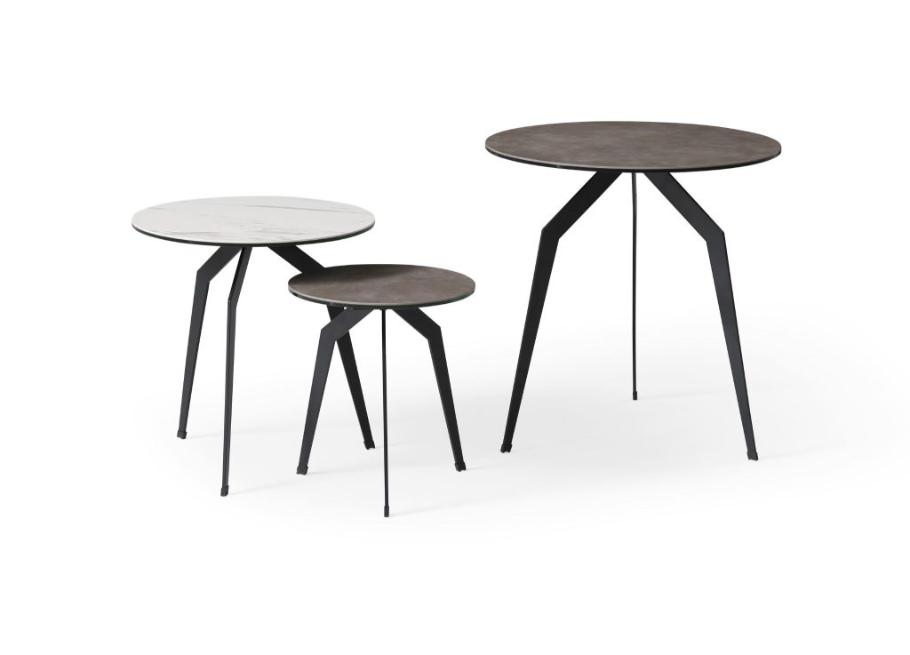 The size relationship requires intentional arrangement—these aren’t interchangeable pieces but rather compositional partners that require thoughtful placement to resolve. The commanding 20-inch diameter of the larger table reads as substantial and grounded, while the 16-inch smaller table creates visual relief through diminishment. Whiteline’s decision to vary both diameter and height prevents the set from reading as simple size repetition; this is composition as design strategy. The glass top on one table creates transparency, the visual clarity reading as contemporary and open, while ceramic provides opacity and warmth. This material contrast rewards observation and understanding.