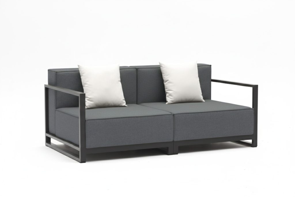 • Materials: Dark grey aluminum frame with weather-resistant seat cushions