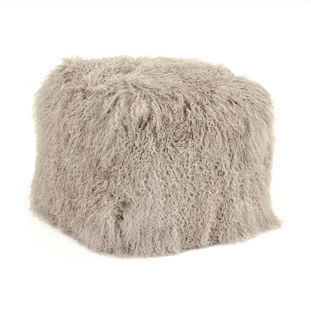 Zentique - 24" x 24" Tibetan Light Grey Lamb Fur Pouf