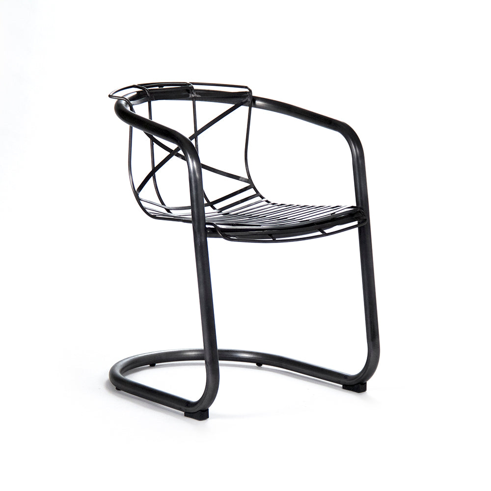 The Finn Arm Chair is a study in minimalist elegance rendered through iron and considered proportions. At 21.25 inches wide and 29 inches tall, this is a contemporary piece that reads as gallery art. Iron’s geometric clarity creates a frame that feels both strong and visually light—an engineering paradox that only metal can achieve. The minimal fabric—likely a cushion or leather sling—sits within the iron structure, creating a composition where material meets void in equal measure. The 27-inch arm height and 18-inch seat width and 17.5-inch depth provide surprising comfort despite the minimalist aesthetic.