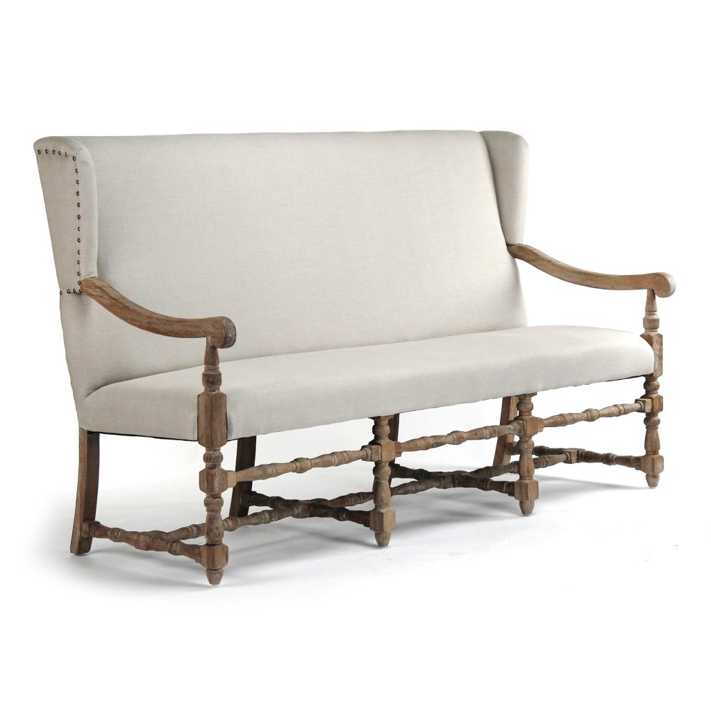 The Franck Bench from Zentique is sculptural seating statement that anchors interiors through proportion and material presence. This commanding 70-inch-wide, 27-inch-deep bench rising 44 inches tall upholstered in natural linen and carved from limed grey oak becomes the focal point of living spaces. The tall back—a design hallmark of Zentique’s European influence—creates architectural containment without claustrophobia. At 65 pounds, it’s substantial enough to anchor moments while remaining accessible for repositioning. The natural linen develops rich patina through years of use and light exposure. The limed grey oak brings cool undertones that emphasize the linen’s warmth. The carved detailing on the frame brings texture without ornamentation—functional craft that supports visual interest. Position this bench facing a fireplace, beneath a gallery wall, or as the anchor to collected living room moments. The generous width allows for stretching, layering with throws, or intimate conversations. The tall back creates intimate seating moments while remaining visually transparent. This is investment seating for those who understand that European craftsmanship, combined with generous proportions and honest materials, creates pieces that define interior spaces for decades. The Franck represents Zentique’s mastery of sculptural seating form.