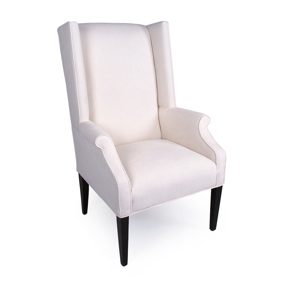 Position the Helene beside a fireplace, within a bedroom corner, or as a solo statement piece where its wings establish visual authority and functional comfort. The substantial 27-pound weight contradicts any sense of insubstantiality, revealing careful craftsmanship. The tall back height provides proper support for reading, contemplation, or conversation. The wing form creates unexpected acoustic benefit—the extended sides help contain sound within intimate space. A piece designed for refined comfort—one that combines visual interest with genuine lounging comfort, promising reliable service through generations of refined living.