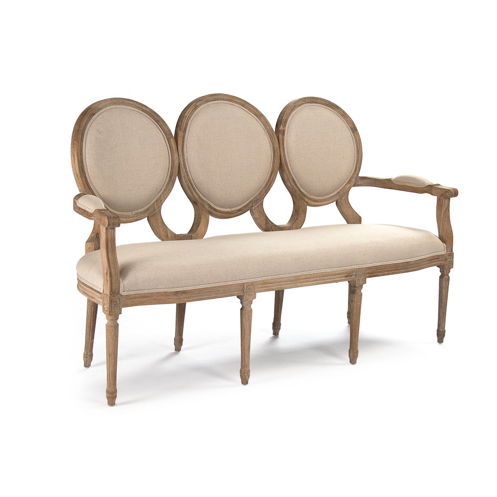 Here is Zentique’s Medallion Settee in signature brown velvet, a study in understated indulgence and European-inspired luxury. The limed grey oak frame (E272 finish) supports a sensuous brown velvet cushion that invites deeper conversation and extended relaxation. Measuring 61.5 inches wide, 24 inches deep, and 39 inches tall, the proportions suit living rooms, master bedrooms, or studies seeking visual impact without aggressive statement-making. The brown velvet provides sumptuous tactile experience—a fabric that feels generous while remaining visually restrained through its dark, muted tone. Unlike linen, which softens through washing, velvet develops subtle sheen and deepens in color with use, creating a cumulative visual record of time spent in comfort. Limed grey oak brings cool, sophisticated undertones that contrast beautifully with warm velvet, creating a composition that suggests 18th-century French salon seating through silhouette and material pairing rather than reproduction. Zentique sources velvet for both durability and aging characteristics, selecting densities and weaves that reward years of use. The curved back and gentle proportions accommodate two people comfortably or one with luxurious sprawl, while the modest 39-inch height prevents visual heaviness in rooms with standard ceilings. At 51 pounds, the settee remains relatively light, allowing repositioning across rooms for seasonal rearrangement. The medallion back carving provides classical detailing without ornamental excess. This velvet settee suits living rooms as a primary seating focus, master bedrooms at the foot of beds, or studies as a refined conversation piece. Zentique’s material philosophy ensures this settee improves with genuine use and time.
