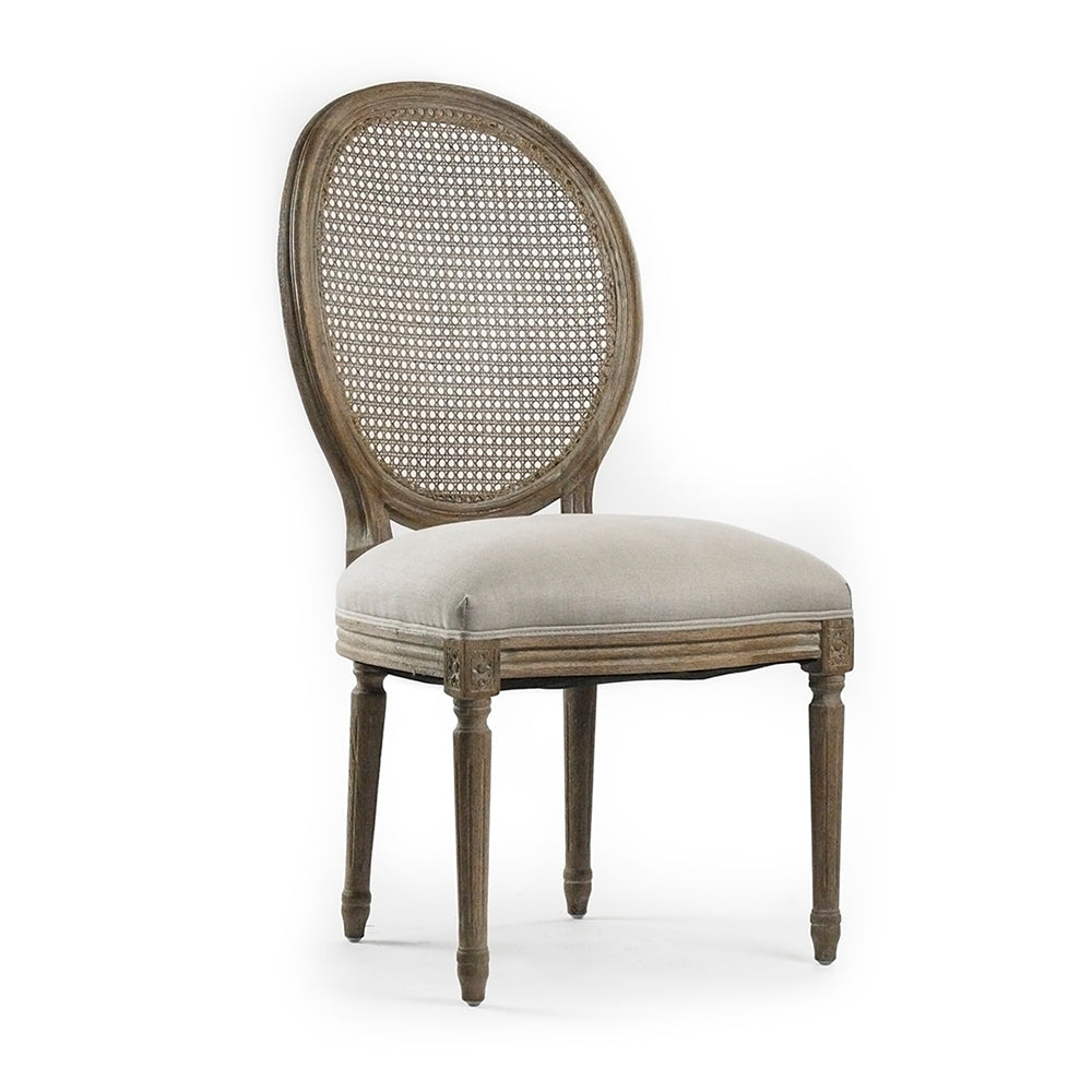The Medallion Side Chair with caning from Zentique brings traditional craftsmanship to contemporary form, merging European antique techniques with modern design sensibility. Built on a limed grey oak frame with natural linen upholstery and woven cane detailing, this 21-inch-wide, 40-inch-tall chair at 18 pounds represents Zentique’s commitment to material complexity and textural richness. The caning—traditional rattan weave hand-applied to select areas—adds visual transparency and traditional craftsmanship without the austerity of full-cane seating. Limed grey oak provides cool, sophisticated undertones that ground the composition, while the natural linen upholstery brings warmth and textural interest through its weave. Zentique sources materials for durability and aging character: oak treated to reveal grain, cane selected for flexibility and strength, and linen woven from natural fibers that soften and deepen with use. The medallion back carving references 18th-century European furniture traditions—a proportion that remains timeless. The caning technique, when viewed from certain angles, creates visual lightness while providing structural support and decorative interest without ornamental excess. Choose this chair for dining rooms, studies, or bedrooms celebrating traditional craftsmanship. The interplay between solid oak, linen, and woven cane creates a layered aesthetic that rewards close inspection and improves with time as materials age together.