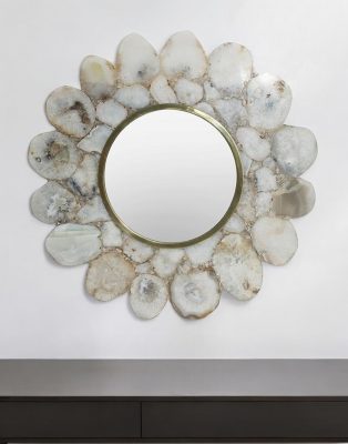Homeroots – 30″ White And Gold Scalloped Stone Framed Accent Mirror